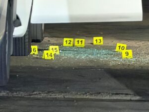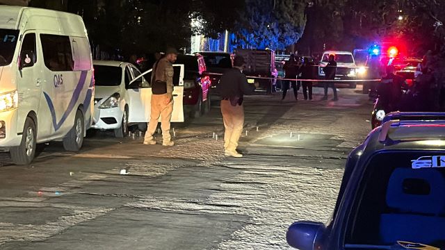 Personal de Servicios Periciales localizó 16 casquillos percutidos calibre 9mm en la escena.