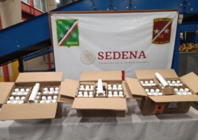 Los hechos ocurrieron cuando personal militar, al realizar una inspección de rutina en la bodega de una empresa de mensajería y paquetería, en el aeropuerto internacional de San Luis Potosí, localizaron, con ayuda de un binomio canófilo, una caja de cartón que contenía en su interior 90 envases tipo spray de 300 mililitros cada uno, con un peso aproximado de 27 litros.