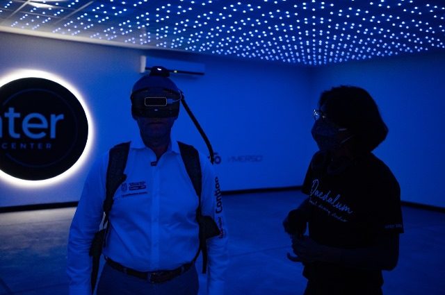 El mandatario visitó el Centro de Realidad Virtual (VRC por sus siglas en inglés) más grande y moderno de Latinoamérica; conoció que esta sala de 500m² funciona gracias a un sistema llamado VIROO, que posibilita crear entornos de trabajo para empresas e instituciones, siendo esta la tecnología punta de lanza en las nuevas industrias.