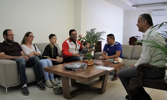 El niño de 10 años originario de Jesús María, quien participará en la categoría C, utilizando rutinas de manos libres, sable y bastón; acompañado de su familia sostuvo un encuentro con el presidente municipal, Antonio Arámbula López, quien le manifestó su respeto y admiración por su talento y tenacidad para llegar a un campeonato internacional de artes marciales.