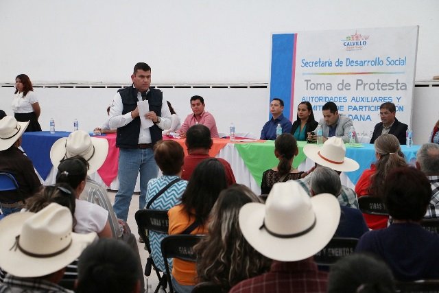 En un acto en el Domo Cultural y Deportivo, el alcalde presentó a las autoridades auxiliares a los integrantes del Cabildo del municipio de Calvillo y a los secretarios que lo acompañan en el gobierno municipal.