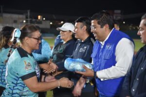 En el evento también se entregó material deportivo a los equipos participantes, como pelotas y equipo de juego, con el objetivo de fortalecer el desarrollo del softbol en el municipio.
