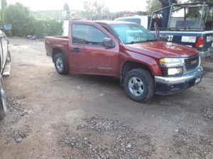 En ese punto, los elementos de la PEP encontraron una camioneta GMC Canyon, modelo 2005, color guinda y placas de circulación del Estado de Texas, E.U., misma que estaba con el motor en marcha y las puertas abiertas.