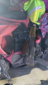 Al registrar a los dos sujetos y al coche, los uniformados los encontraron en posesión de un arma de fuego larga AK-47 calibre 7.62×39 (“cuerno de chivo”), con su respectivo cargador abastecido con 28 cartuchos útiles, así como otro cargador para el mismo tipo de arma con ocho cartuchos.