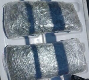 En la unidad se desplazaban quienes dijeron llamarse Jesús, de 46 años, y Jorge David, de 22, a quienes les fueron aseguradas dos bolsas de plástico transparentes, las cuales contenían un kilogramo de marihuana.