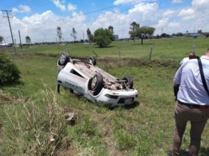 El vehículo era conducido por Alonso Huerta Mejía, de 32 años de edad, quien resultó ileso tras salirse del camino y volcar el auto compacto, presuntamente derivado de una falla mecánica.