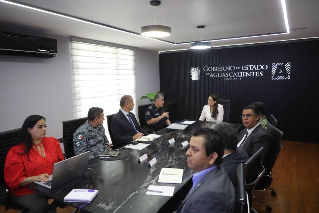 AGUASCALIENTES, AGS.- Con el objetivo de supervisar y dar seguimiento a las acciones del Plan de Seguridad y Justicia “Blindaje Aguascalientes”, la gobernadora Tere Jiménez sostuvo una reunión de trabajo con los titulares de las corporaciones de seguridad estatal y federal.
