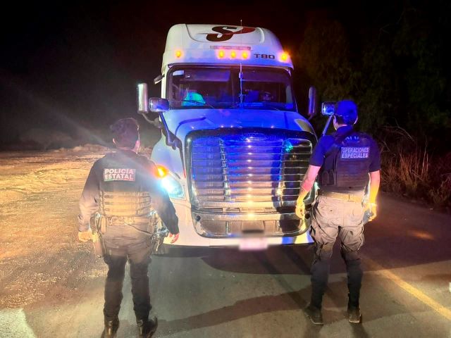 Al realizar la inspección correspondiente, elementos de la Policía Estatal Preventiva y la Municipal de Loreto confirmaron que se trataba del tractocamión Freightliner, línea Cascadia 2019, reportado como robado.