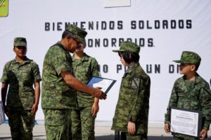 AGUASCALIENTES, AGS.- El Instituto de Servicios de Salud del Estado (ISSEA) en coordinación con la Secretaría de la Defensa Nacional, a través de la 14va. Zona Militar, llevaron a cabo el evento “Soldado por un día”, para motivar y reconocer a todos los menores que padecen cáncer y son tratados en el Centenario Hospital Miguel Hidalgo.