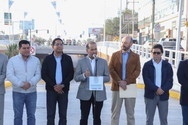 AGUASCALIENTES, AGS.- Gracias al paso a desnivel de Segundo Anillo y Salvador Quezada Limón, más de 80 mil aguascalentenses se benefician al acortar sus tiempos de traslado y con ello, pasar más tiempo con sus familias; así lo aseguró el gobernador Martín Orozco Sandoval al inaugurar esta obra.