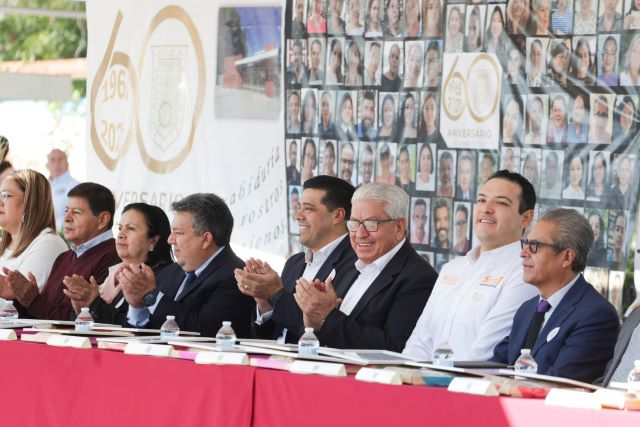 AGUASCALIENTES, AGS.- La mañana de este lunes el presidente municipal Leo Montañez presidió la ceremonia cívica para dar inicio a los festejos por el 60 aniversario de la Secundaria Técnica número 1 “José Reyes Martínez”.