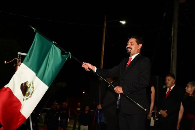 En la ceremonia que se llevó a cabo en la cabecera municipal, la escolta local le entregó la bandera de México al alcalde, quien previo a dar el campanazo y ondear la bandera para celebrar el inicio de la lucha por la Independencia de México, expresó: “mexicanos, viva la independencia nacional, vivan los héroes que nos dieron patria, vivan los héroes que nos dieron libertad, viva Hidalgo, viva Morelos, viva Allende, viva La Corregidora Doña Josefa Ortiz de Domínguez, viva Aldama, viva Guerrero, viva la independencia nacional, viva Aguascalientes, viva Pabellón de Arteaga, viva México, viva México, viva México”.