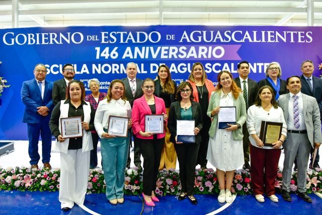 AGUASCALIENTES, AGS.- La gobernadora de Aguascalientes, Tere Jiménez, encabezó la celebración del 146 aniversario de la Escuela Normal de Aguascalientes (ENA), reconocida por preparar docentes de educación básica con una formación integral y humanista.