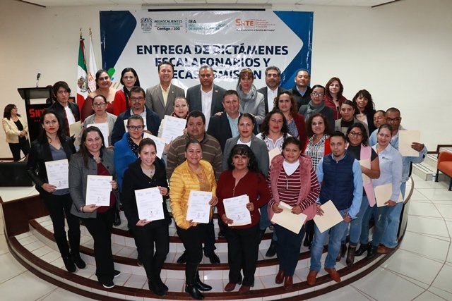 AGUASCALIENTES, AGS.- A favor de la promoción laboral del Personal de Apoyo y Asistencia a la Educación (PAAE), el Instituto de Educación de Aguascalientes (IEA), a través de la Comisión Estatal Mixta de Escalafón, entregó 35 dictámenes escalafonarios a trabajadores del servicio educativo en el estado, en beneficio del bienestar personal y familiar.