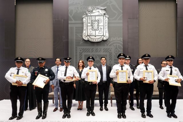 Durante la ceremonia realizada en Palacio Municipal 12 elementos de la Policía Municipal fueron galardonados en distintas categorías, como Mérito Policial, Mérito Ejemplar, Mérito Académico, Mérito Tecnológico, Mérito Docente y Mérito Deportivo, las cuales distinguen la entrega, la vocación y el compromiso con la seguridad de las familias de Aguascalientes.