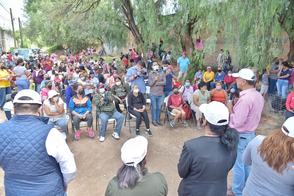JESUS, MARIA, AGS.- Los integrantes del Cabildo de Jesús María, acompañados por el alcalde Antonio Arámbula López y la empresaria y ex regidora, Dulce Teresita Salazar, entregaron apoyos alimentarios a habitantes de Los Arenales de la Delegación Maravillas.