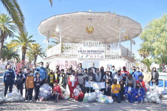 JESÚS MARÍA, AGS.- El Municipio de Jesús María entregó material deportivo para las Ligas Deportivas Municipales, acto que fue encabezado por el alcalde José Antonio Arámbula López, quien estuvo acompañado por el titular de la Instancia del Deporte, Felipe Loza Muñoz, y la titular del Sistema de Asesoría y Acompañamiento a las Escuelas (SISAE), Ana María Gallegos Bocanegra.