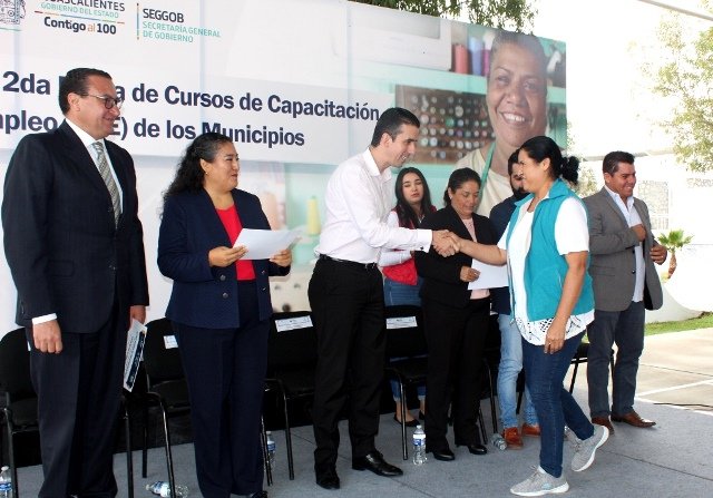 En su intervención, la directora general del SNE Aguascalientes, Carmen Villa Zamarripa, informó que durante su capacitación cada uno de los beneficiarios recibirá una beca de 2 mil 453 pesos, además de los materiales necesarios; comentó que dentro de los cursos que se imparten, destacan repostería, preparación de alimentos, elaboración de dulces regionales y fabricación de huaraches, entre otros.