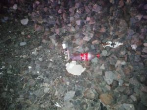 Además, en medio de las vías encontraron una bolsa de plástico y a un lado de ellas una botella de bebida embriagante y un envase de refresco, al parecer pertenecientes a la víctima.