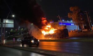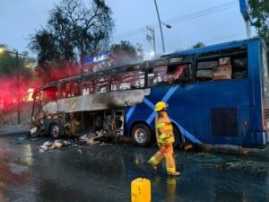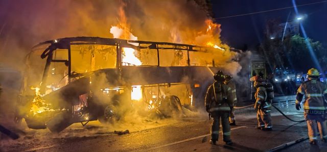 Las llamas consumieron por completo el camión, que quedó varado sobre la avenida mencionada, aunque los paramédicos confirmaron que ni los dos choferes ni los 34 pasajeros resultaron lesionados.