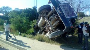 Los elementos comprobaron que Óscar no había resultado lastimado y enseguida solicitaron el apoyo de una grúa especial para poder sacar el camión de la zanja, lo cual les llevó algo de tiempo.