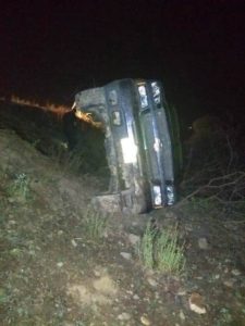 Aparentemente, el conductor de la camioneta Chevrolet Silverado, en color verde, modelo 2005, con placas del estado, se desplazaba a exceso de velocidad sobre la carretera 46, por lo que en determinado momento perdió el control de su unidad y se salió del camino, originándose de esta manera la volcadura.