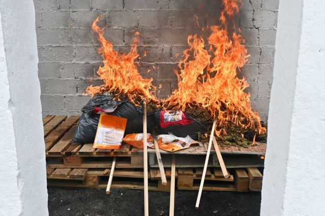 Como resultado de estas acciones se incineraron 419.2 gramos de metanfetamina, 113.2 gramos de cocaína y 33.980 kilogramos de marihuana.