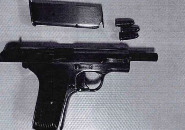 Durante la inspección, le aseguraron un arma de fuego tipo pistola, con su cargador abastecido y tres cartuchos útiles.