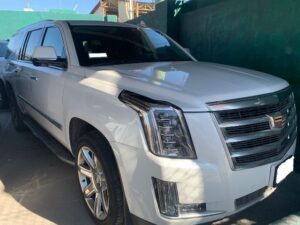 Chevrolet, línea Silverado, tipo Pick-up, color blanco, modelo 2020, con placas de circulación de Aguascalientes.- Cadillac, línea Escalade, color blanco, modelo 2020, placas locales.