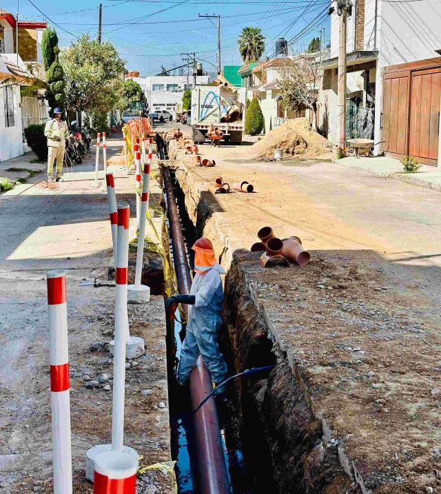 - Los trabajos se llevan a cabo en la red sanitaria ubicada en la calle San Vicente, entre Carlos Sagredo y Manuel Kant, en el fraccionamiento San Cayetano, con una sustitución de 78 metros lineales de tubería de 10 pulgadas de diámetro