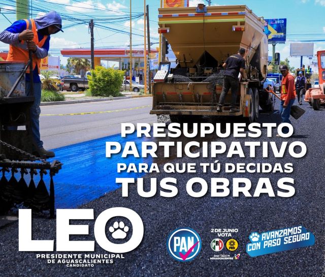 AGUASCALIENTES, AGS.- Nuestra ciudad necesita la participación de todos sus habitantes para crear un futuro sostenible e inclusivo, es por ello que Leo Montañez, candidato a la Presidencia Municipal de la capital por la coalición Fuerza y Corazón por Aguascalientes, señaló que buscará fortalecer el programa de presupuesto participativo, mediante el cual la ciudadanía puede proponer y decidir en qué obras se utiliza una parte de los recursos del municipio.