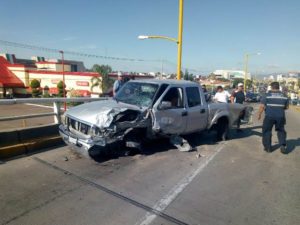 AGUASCALIENTES, AGS.- Un muerto y cuatro lesionados fue el saldo que dejó un fuerte choque entre un automóvil y una camioneta ocurrido en la parte superior del puente vehicular de la avenida Aguascalientes, a la altura de la también avenida Héroe de Nacozari, la mañana del domingo 9 de septiembre.