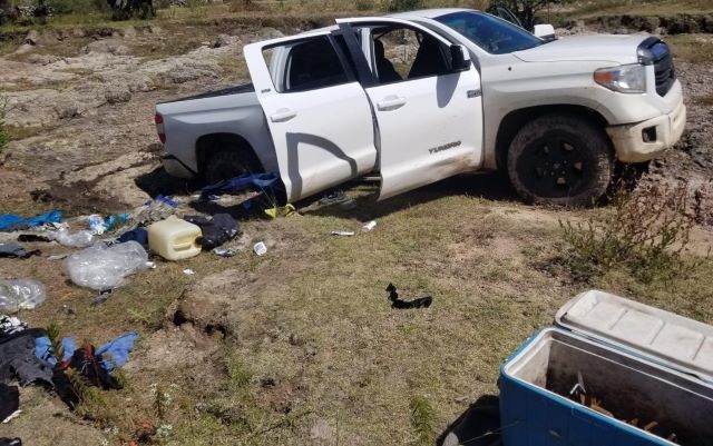 Al repeler la agresión se logró el aseguramiento de una camioneta Toyota Tundra, ocho cargadores de AK-47, 210 cartuchos, 190 dosis de la probable droga conocida como “crystal”, un chaleco táctico con las siglas de un grupo delincuencial, una granada, equipo táctico y un recipiente con decenas de estrellas metálicas conocidas como poncha llantas.