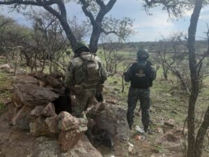 TEPETONGO, ZAC.- Al realizar recorridos de vigilancia y reconocimientos terrestres, elementos del Ejército Mexicano y de las Fuerzas de Reacción Inmediata Zacatecas (FRIZ) de la Policía Estatal Preventiva (PEP), ubicaron y destruyeron un campamento utilizado por un grupo delincuencial y también aseguraron cargadores y cartuchos útiles.