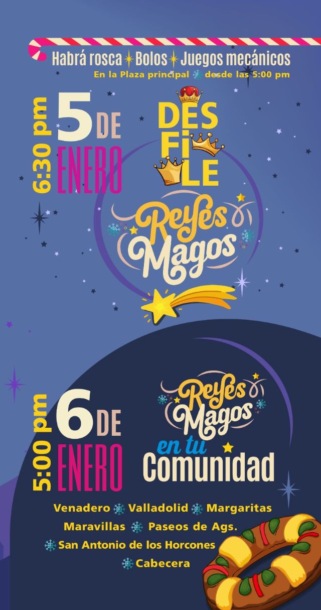 Estas actividades estarán encabezadas por el presidente municipal de Jesús María, César Medina, y la presidenta del Sistema DIF Municipal, Silvia de la Cruz, y darán inicio el lunes 5 de enero con el tradicional desfile de los Reyes Magos, el cual concluirá en la Plaza principal.