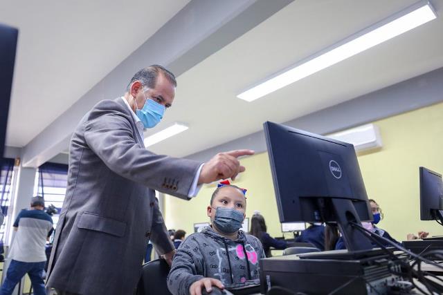 Acompañado por autoridades educativas y padres de familia, llamó a las y los profesores y alumnos a utilizar con ánimo esta nueva aula que está totalmente equipada con computadoras, software y programas digitales para la enseñanza de este plantel.