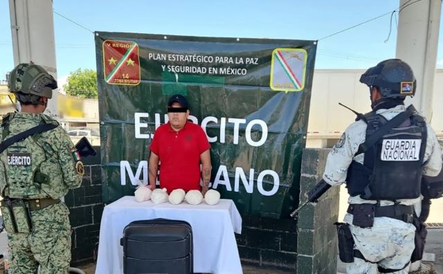 AGUASCALIENTES, AGS.- Elementos del Ejército Mexicano y de la Guardia Nacional asestaron un fuerte golpe al narcotráfico en Aguascalientes al detener a un sujeto y asegurar un cargamento de 5 kilos de crystal que transportaba en un autobús de pasajeros.