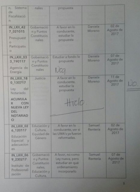 Comentó que existe otra iniciativa referente a la Ley del Notariado en donde se ve que dice “hielo” y “no”; acotó que prácticamente así legisla el PAN-PES, sobre las rodillas, no se llega a discutir en comisiones, además dijo que otro punto que están haciendo mal es que no se toma en cuenta la opinión de los diputados promoventes para que al menos defienden y expliquen su iniciativa, dejó en claro que “lo que es del PAN, adelante y lo que es de la oposición, palo”.