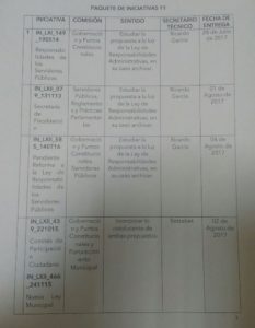 El presidente de la Comisión de Medio Ambiente y Recursos Naturales de la LXIII Legislatura informó que existe un listado de las iniciativas en donde ya está dada la instrucción de cuáles van en contra y que los secretarios técnicos tienen que justificar “como ellos piensen que no es correcto las iniciativas que se proponen”, “tal es el caso de la propia donde propuse la creación de la Secretaría de Energía, de un plumazo, dicen hazlo en negativo y listo”.