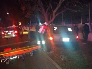 AGUASCALIENTES, AGS.- Elementos del Grupo de Operaciones Aéreas de la Policía Municipal de Aguascalientes brindaron atención prehospitalaria a un ciudadano lesionado tras chocar a bordo de su vehículo contra un árbol.