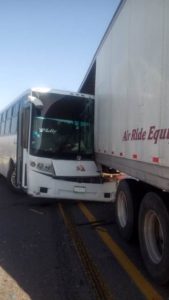 RINCÓN DE ROMOS, AGS.- Bomberos estatales, bomberos municipales de Rincón de Romos, así como policías del mismo Ayuntamiento, policías federales y paramédicos del ISSEA, se trasladaron a la carretera federal 45 Norte, a la altura del libramiento a Rincón de Romos, tras haber recibido el reporte de que en ese punto se había registrado un hecho de tránsito terrestre tipo choque entre un camión y un tráiler color rojo, que dejó como saldo una persona lesionada.