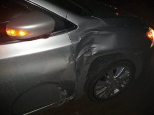 Por tal motivo, invadió el carril central y fue entonces que colisionó fuertemente contra el automóvil.
