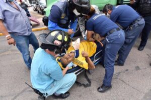 El reporte del accidente se recibió a las 12:20 horas de este martes en el C4 Municipal de Aguascalientes, en el que se manifestaba que sobre avenida Canal Interceptor cruce con avenida Independencia, en el fraccionamiento El Plateado, se había registrado un choque entre un camión y una silla de ruedas, situación por la que de inmediato se trasladaron elementos de la Policía Municipal de Aguascalientes en coordinación con Policía Vial y paramédicos del Grupo de Operaciones Aéreas del helicóptero “Halcón Uno” al lugar de los hechos.