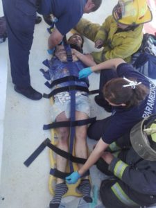 Al lugar acudieron elementos de la Coordinación Municipal de Protección Civil y de Bomberos Municipales en las unidades UE-01, UE-13, UE-15 y UE-16, que se encargaron de auxiliar al joven para luego descenderlo.