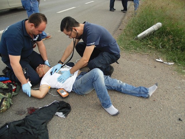 Dos paramédicos que pasaban por el sitio se detuvieron para brindarle los primeros auxilios y luego llegaron los técnicos en urgencias médicas del ISSEA en la ambulancia ECO-333 para trasladarlo al nosocomio de la calle Galeana ya que su estado de salud era delicado.