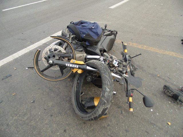 El impacto fue bastante fuerte, por lo que la “jaca de acero” quedó destrozada y Giovani cayó al piso y quedó tirado gravemente lesionado.