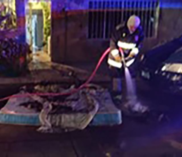 Los bomberos acudieron al domicilio y encontraron un colchón incendiándose, por lo que apagaron el fuego.
