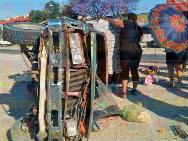 LAGOS DE MORENO, JAL.- Una falla mecánica provocó la volcadura de una camioneta en la que viajaba una familia, por lo que una niña resultó lesionada de gravedad y tuvo que ser internada en el Hospital Regional.