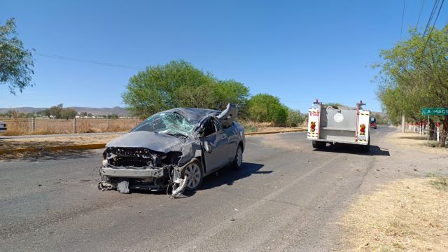 RINCÓN DE ROMOS, AGS.- Una joven sufrió lesiones graves tras la aparatosa volcadura del automóvil que conducía en el municipio de Rincón de Romos.