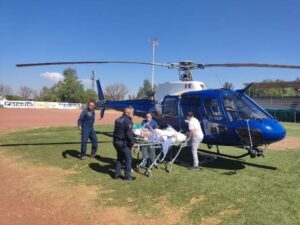 Fueron necesarios sólo seis minutos para arribar a las instalaciones del helipuerto ubicado en el Hospital Hidalgo, donde personal del área de urgencias estaba preparado para recibirla, tras lo cual fue llevada al área de terapia intensiva, donde su estado de salud se reporta como grave.